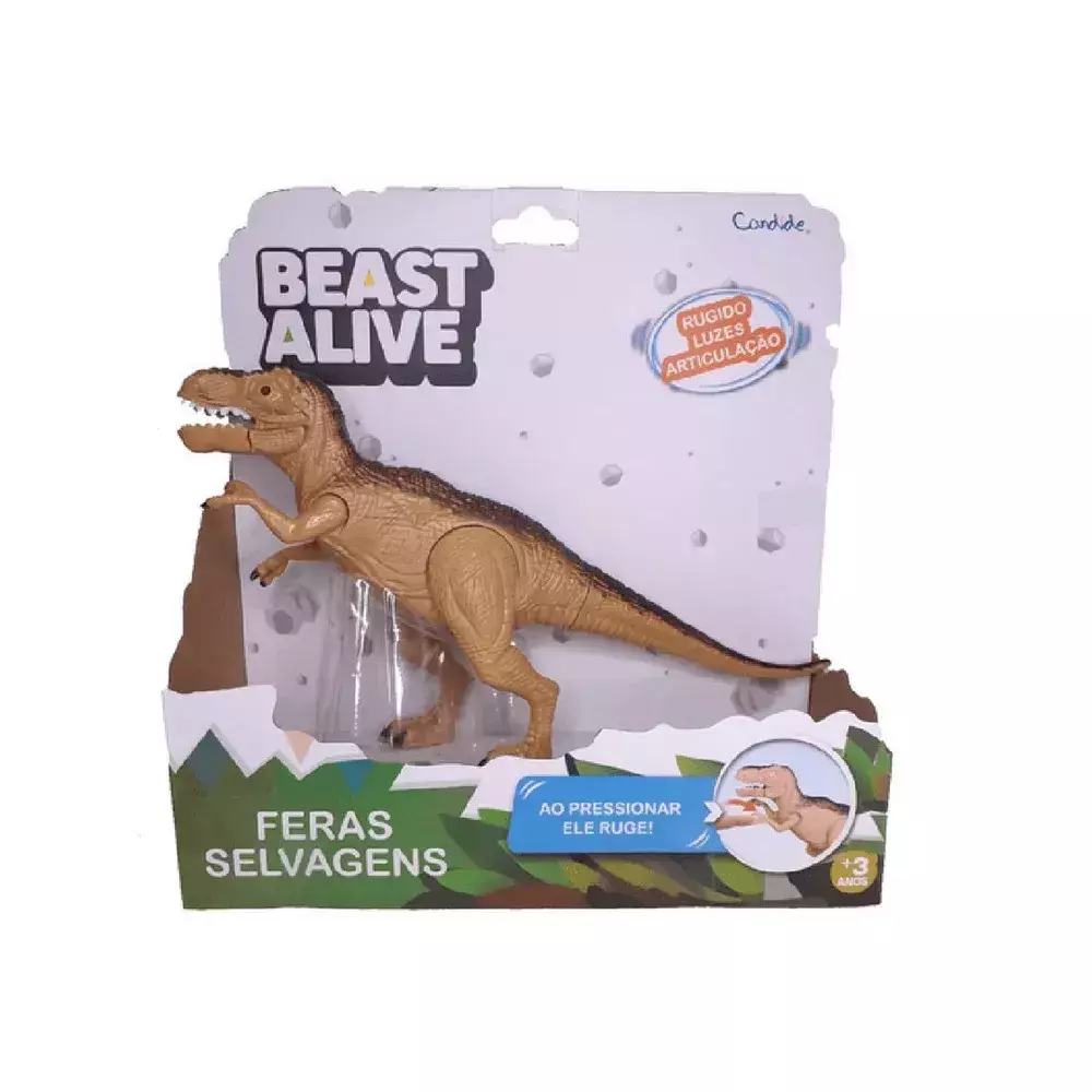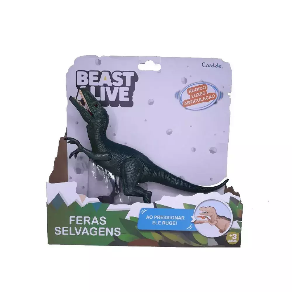 As crianças vão se divertir com as Feras Selvagens Beast Alive da Candide! Esses mini dinossauros parecem de verdade: emitem sons realistas, têm movimentos nas patas e olhos que brilham com efeito de luz. A brincadeira fica ainda mais emocionante com os diferentes modelos disponíveis, como Tiranossauro Rex, Espinossauro, Tricerátops, Velociraptor, Dilofassauro e até Dragão. Um brinquedo cheio de ação, que estimula a imaginação e a criatividade dos pequenos exploradores do mundo jurássico.