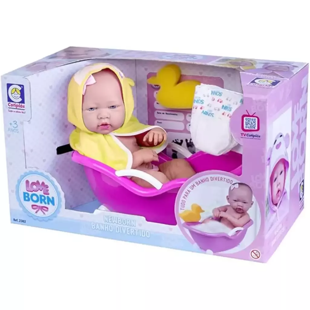 A Boneca Love Born Banho Divertido da Cotiplas transforma a hora do banho em um momento especial de brincadeira e cuidado! Ideal para crianças a partir de 3 anos, ela pode ser levada para a água, proporcionando experiências realistas de faz de conta. Com corpo em plástico resistente, é segura, leve e fácil de higienizar. Perfeita para estimular a imaginação, a afetividade e a coordenação motora dos pequenos.