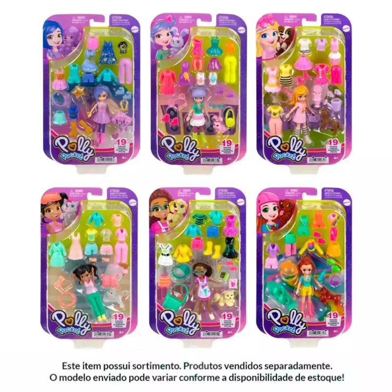 As crianças vão adorar criar looks estilosos com o Conjunto Polly Pocket 19 Peças da Mattel! Cada playset vem com uma boneca Polly Pocket de 7,62 cm, um animalzinho de estimação e diversos acessórios brilhantes e perolados. São 19 peças no total que permitem infinitas combinações para brincar de moda e criatividade. Produto sortido: o modelo enviado pode variar conforme disponibilidade de estoque.