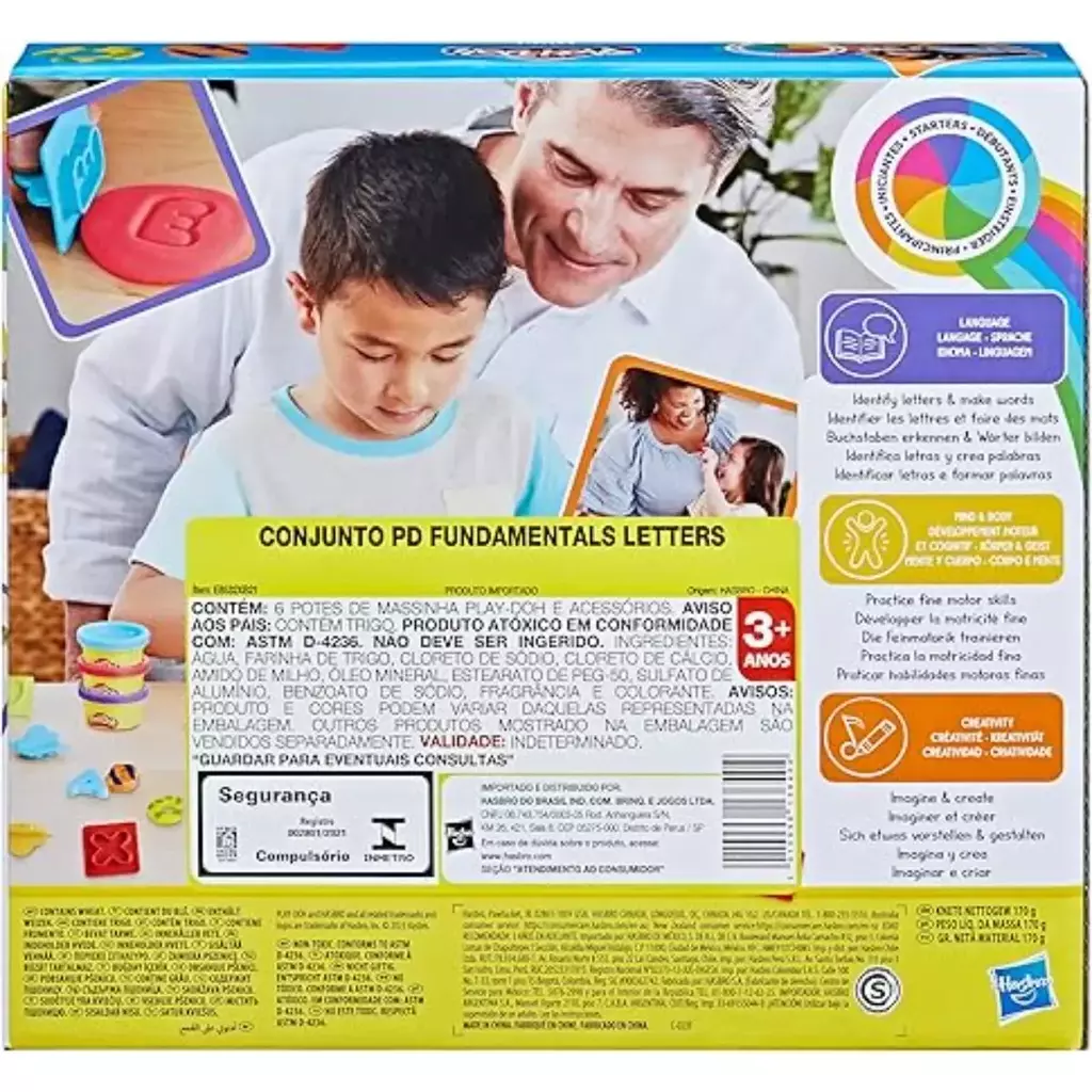 Com o Conjunto Play-Doh Letras da Hasbro, aprender o alfabeto se transforma em uma atividade criativa e divertida! Indicado para crianças a partir de 3 anos, o kit inclui moldes de todas as letras do alfabeto e 6 potes de massinha colorida para que os pequenos criem letras, palavras e novas combinações de cores. Feito com material atóxico, o brinquedo estimula o desenvolvimento da coordenação motora, imaginação e habilidades de linguagem de forma segura e lúdica.