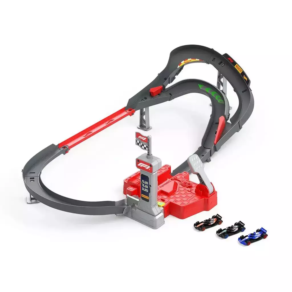 Inclui 3 veículos oficiais da Fórmula 1 com detalhes realistas.