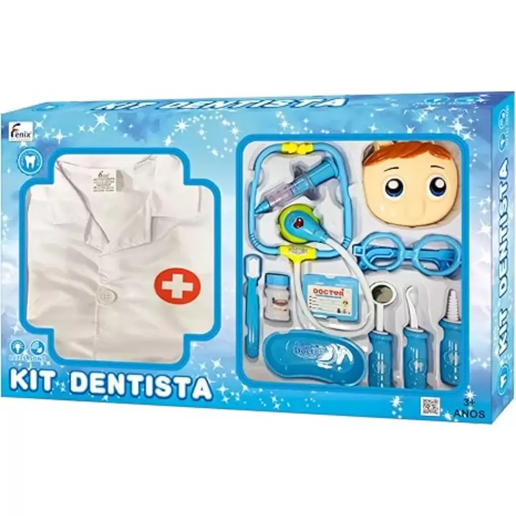 O Kit Dentista com Avental da Fênix Brinquedos é uma divertida forma de introduzir as crianças ao universo da saúde bucal. Composto por instrumentos de dentista e um avental azul, o kit conta ainda com luz funcional alimentada por baterias, tornando a brincadeira ainda mais realista. Indicado para crianças a partir dos 3 meses até os 10 anos, estimula o faz de conta, a coordenação motora e o aprendizado sobre cuidados com os dentes.