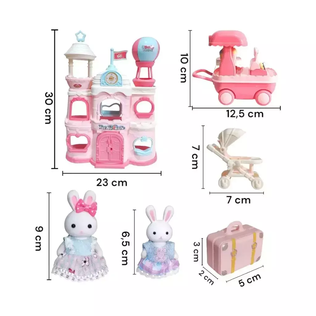 Conteúdo da Embalagem: 01 Palácio, 01 Coelhinha, 01 Coelhinha Pequena + Acessórios